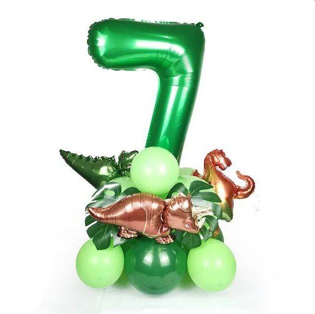 Цифра 7 на підставці із кульок з динозаврами | Салатовий