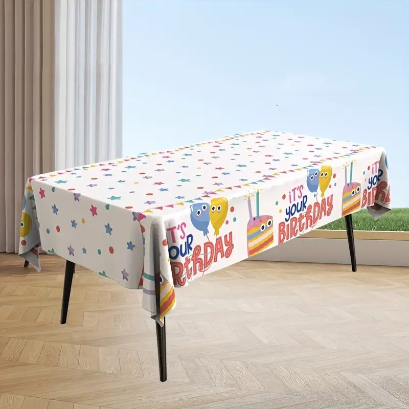 Скатертина святкова фольгована з написом It's Your Birthday Зірочки 137x183см | Білий